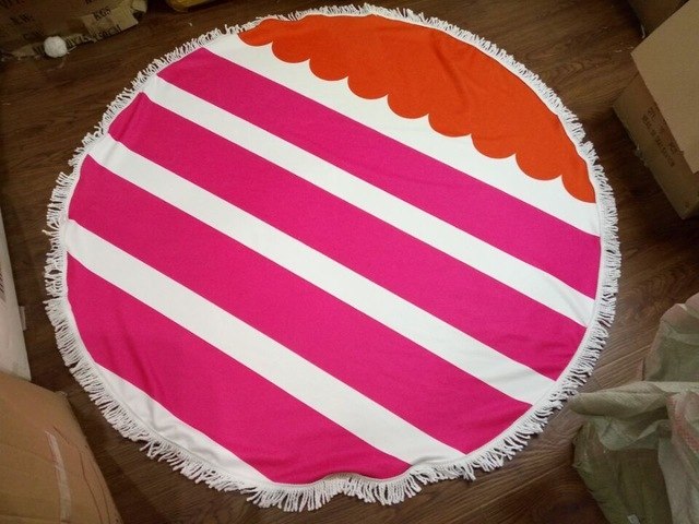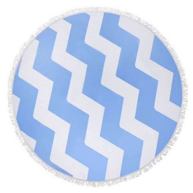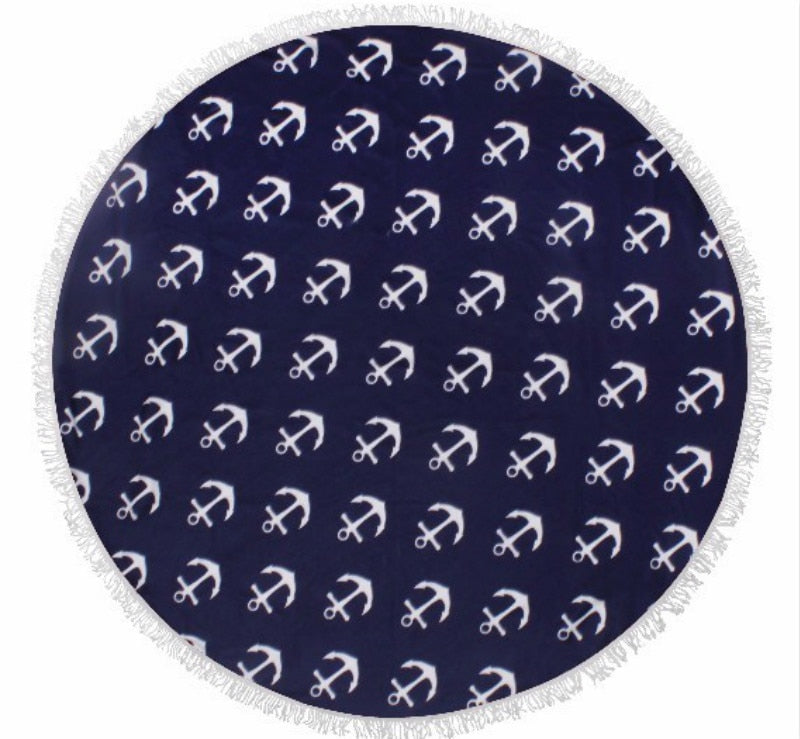 Sunbathe Printed Stripe Sea Wave Anchor Big Large Microfiber Towel Beach Round Bath Towels For Adults Tassel Serviette De Plage